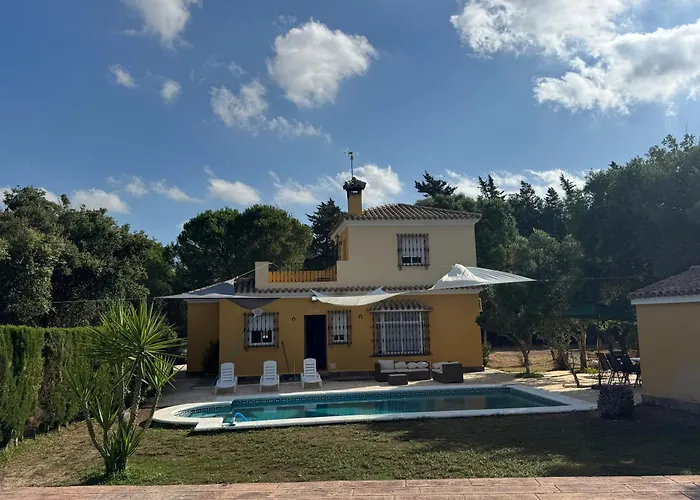De 1-slaapkamer Entre Romero Cádiz villa ligt op 4 km van Pinar de hierro en biedt een terras met uitzicht op het zwembad. Dit vakantiehuis biedt uitzicht op de tuin en nodigt gasten uit om Magic point Sparta te bezoeken, binnen 10 minuten rijden.
